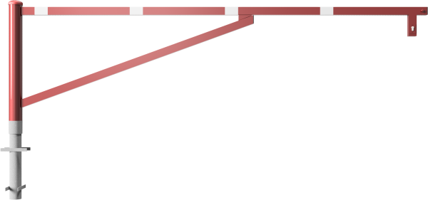 Die Drehschranke von Schake GmbH ist eine horizontal schwenkbare Schranke mit zwei stabilen Auflagepfosten. Sie bietet eine Verriegelungsmöglichkeit für ein Vorhangschloss oder ein Profilzylinderschloss nach DIN 3223. Der Drehpfosten besteht aus einem Stahlrohr mit einem Durchmesser von 102 mm, während der Schrankenbaum aus einem Stahlrohr von 60 x 40 mm gefertigt ist. Die Auflagepfosten messen 70 x 70 mm. Die Schranke hat eine Höhe von ca. 950 mm über dem Boden und ist für das Einbetonieren vorgesehen. Sie ist feuerverzinkt und rot beschichtet mit weißen reflektierenden Ringen. Die lichte Weite beträgt 3000 mm.
