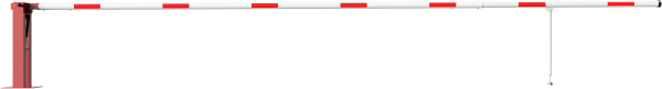 Der Schrankenbaum besteht aus einem starkwandigen Ø 80 mm Aluminiumrohr, das mit rot reflektierenden Streifen versehen ist. Die Gesamthöhe der Schranke beträgt ca. 950 mm über dem Boden, und die lichte Weite beträgt 7000 mm. Die Schranke kann in geöffneter und geschlossener Position arretiert werden und ist für die Verwendung mit einem Vorhangschloss vorgesehen.