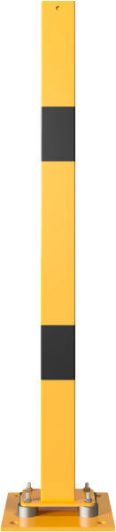 Der elastische Standpfosten von Schake GmbH ist ein vielseitiges Schutzgeländer, das sich ideal zum Aufdübeln eignet. Hergestellt aus 70 x 70 mm Stahlrohr mit Ober- und Knieholm, bietet dieser Standpfosten eine neigbare Funktion, die den Hallenboden schützt, indem sie bei Stößen ein Herausreißen der Befestigung verhindert. Die Bodenplatte misst 220 x 220 mm und ist gelb beschichtet. Mit einer Höhe von ca. 1100 mm ist der Standpfosten perfekt für den Einsatz in Werksgeländen, Maschinen und Anlagen oder Einfahrten geeignet.